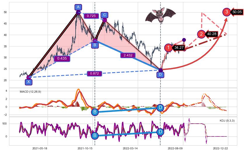 ➣ 已完成【蝙蝠】形态起点X: 2021-03-15, 终点D: 2022-05-30, 共293交易日