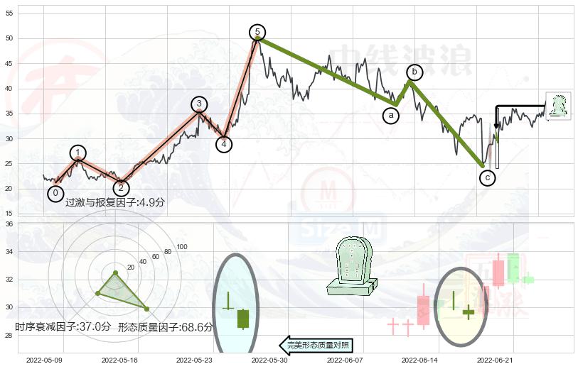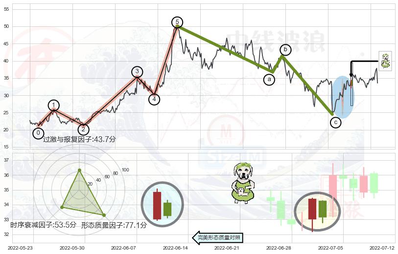 ➢ 🕰 价格走势在2022-06-30至2022-07-01期间形成下跌身怀六甲,残存影响值:-3.55