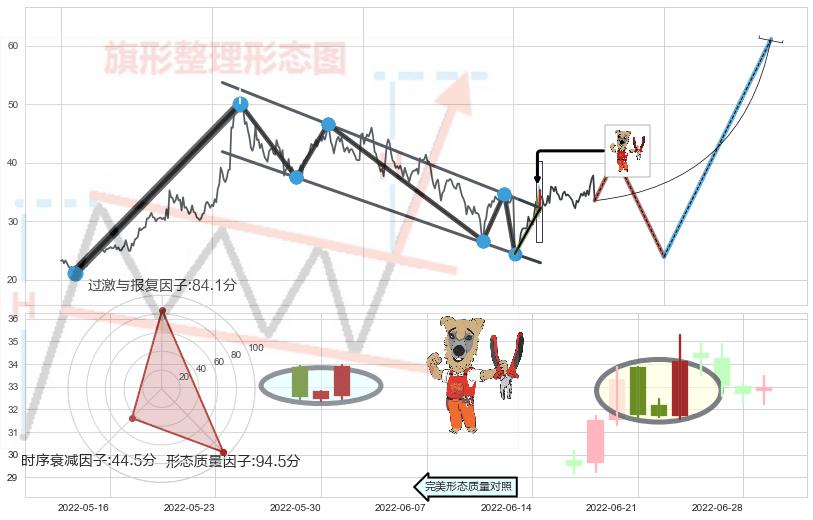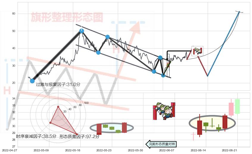 ➢ 【买1】: 激进型 买点 →(2022-06-23: 32.30 )形成突破降⚑旗形【整理】形态