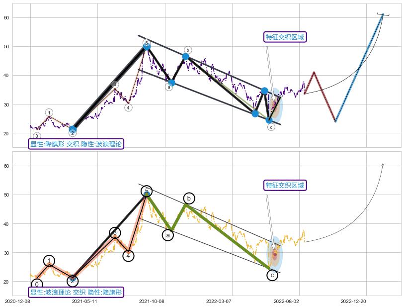 ➣ 顶部尽头线(下山虎) + 波浪理论击穿破位C点继续下跌信号叠加后【目标达成率】低,【看空】信号叠加【存续影响大】