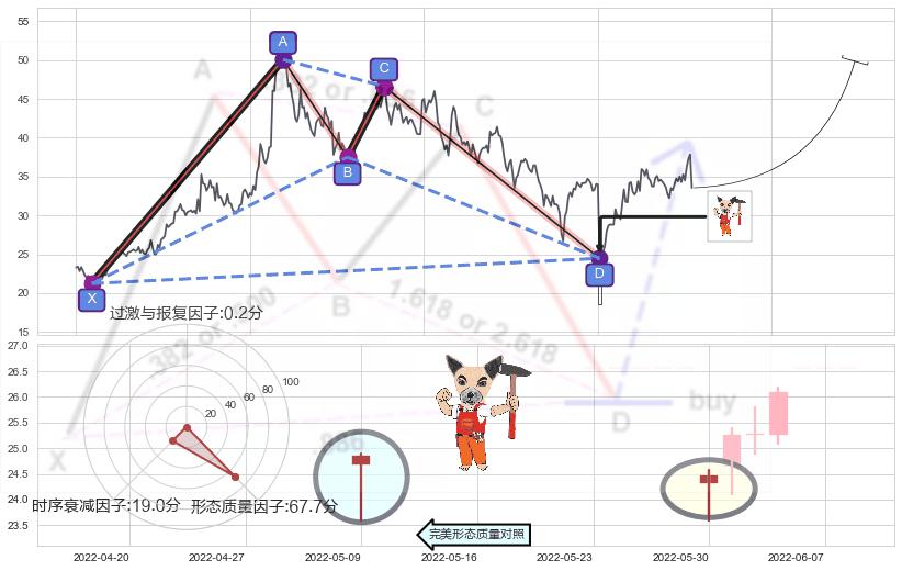 ➢ 锤头线(锤子线) 🔜 谐波蝙蝠d拐点上涨支撑 综合量化分数:53.45 【中性】