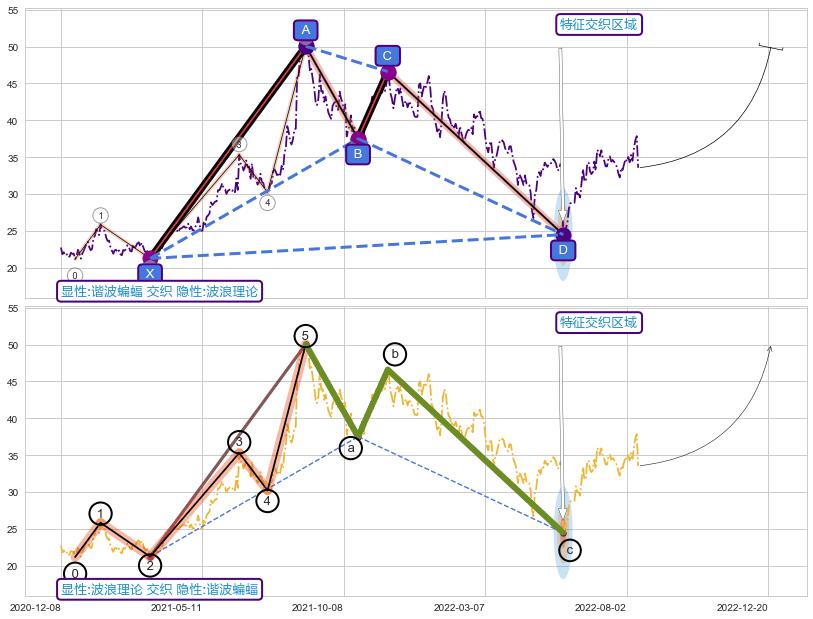 ➢ 谐波蝙蝠与波浪理论信号事件周期长度级别相同,同周期信号事件
