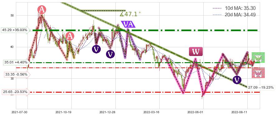 ♘ 阻力价格位35.01,可信任强度66.14%,距离最后交易2022-08-12形成的收盘价格33.54相差 +4.40%
