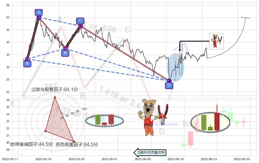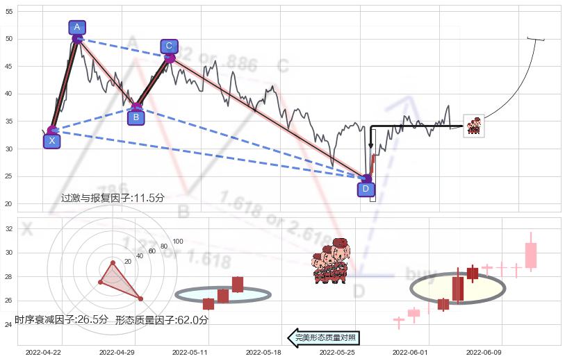 ➢ 双针探底 🔜 谐波蝴蝶d拐点上涨支撑 综合量化分数:50.35 【中性】
