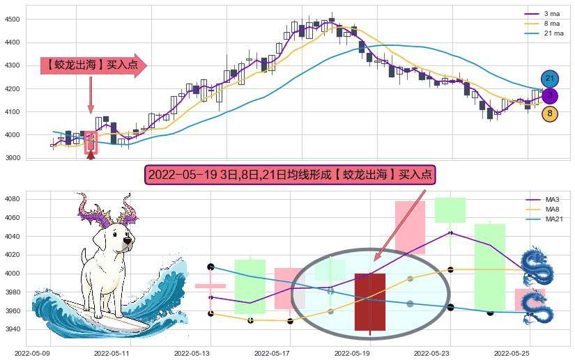⚀ 2022-05-19日显现 3日-8日-21日均线 【蛟龙出海】买入点 看多信号,后市看涨,买入