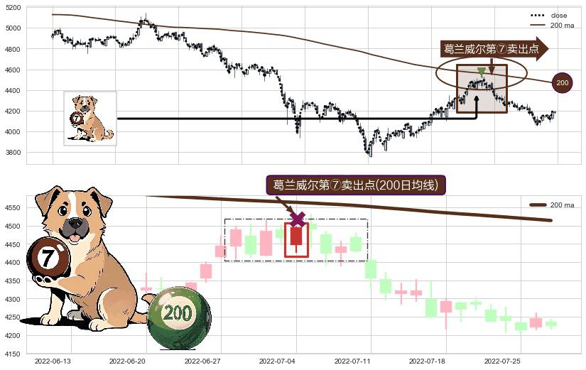 ⚀ 2022-07-04-日显现 葛兰威尔均线 200日均线 第⑦卖出点 下降趋势的中继信号,后市看跌,卖出信号