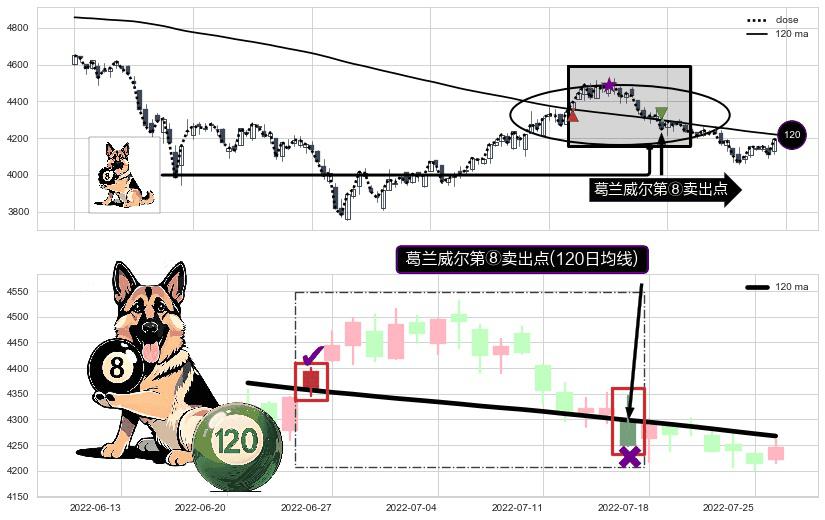 ⚀ 2022-07-15-日显现 葛兰威尔均线 120日均线 第⑧卖出点 下降趋势的中继信号,后市看跌,卖出信号