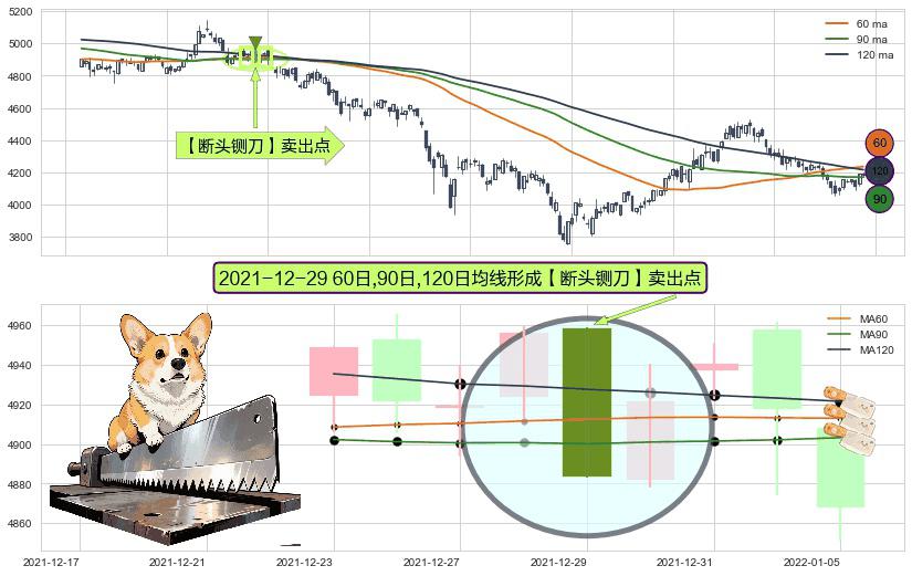 ⚀ 2021-12-29日显现 60日-90日-120日均线 【断头铡刀】卖出点 看空信号,后市看跌,卖出