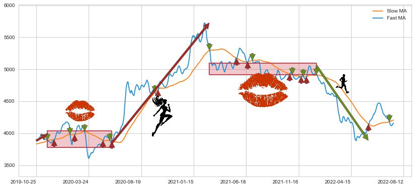 2022-01-04至2022-06-07 慢线与快线呈空头排列, 慢线与快线接触少,无缠绕