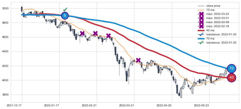 ⚂ 2022-06-24-日均线向上突破,2022-07-15-日重新下穿均线破位,均线阻力再次生效