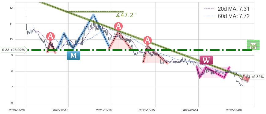 ♘ 阻力价格位9.33,可信任强度98.31%,距离最后交易2022-08-12形成的收盘价格7.24相差 +28.92%