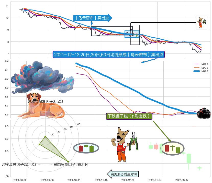 | 7 🅚:乌云盖顶 ➕ 🎢:【死亡谷】卖出点均线组合卖出点信号形成后,猜想后续破位下跌,沿着向下的尖头三角下跌 ☞ 看空信号 ⇥ 【均线】交织【🅚线】⇥ 综合量化分数: 47 | > |