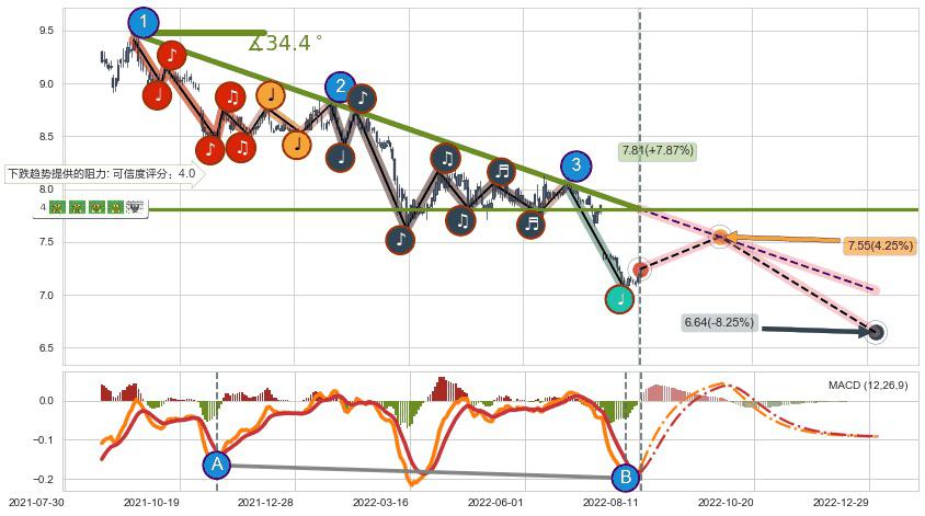 ➢ 预测:2022-09-30,【小幅反弹】稳定目前下跌趋势的前提下,预测价格:7.55