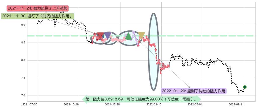 ♘ 阻力价格位8.69,可信任强度99.00%,距离最后交易2022-08-12形成的收盘价格7.24相差 +20.04%