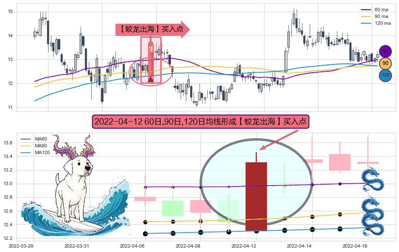 形态多维评估: ⚀ 2022-04-12日显现 60日-90日-120日均线 【蛟龙出海】买入点 看多信号,后市看涨,买入