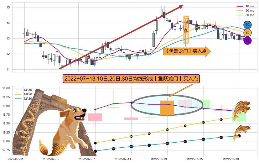 形态多维评估: ⚀ 2022-07-13日显现 10日-20日-30日均线 【鱼跃龙门】买入点 看多信号,后市看涨,买入