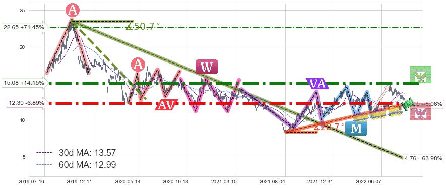 ➢ 【仅预测突破】最后价格:13.21与预测突破价格:14.46→【空间临近】后续最小【反转】第一目标价格→(2022-12-30: 21.20 )