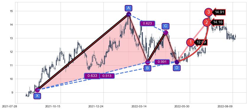➣ 2022-06-28到达第❷价格目标位置14.16