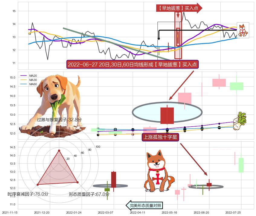 | 2 🅚:上涨螺旋桨形态 ➕ 🎢:【旱地拔葱】买入点均线组合买入点信号形成后,猜想后续向上脱离整理形态,持续突破上升 ☞ 看多信号 ⇥ 【均线】交织【🅚线】⇥ 综合量化分数: 51 | > |