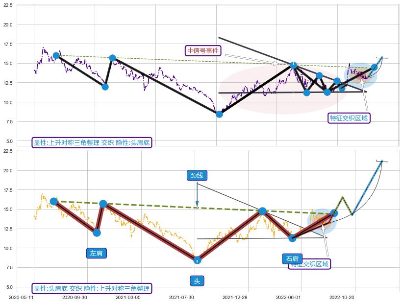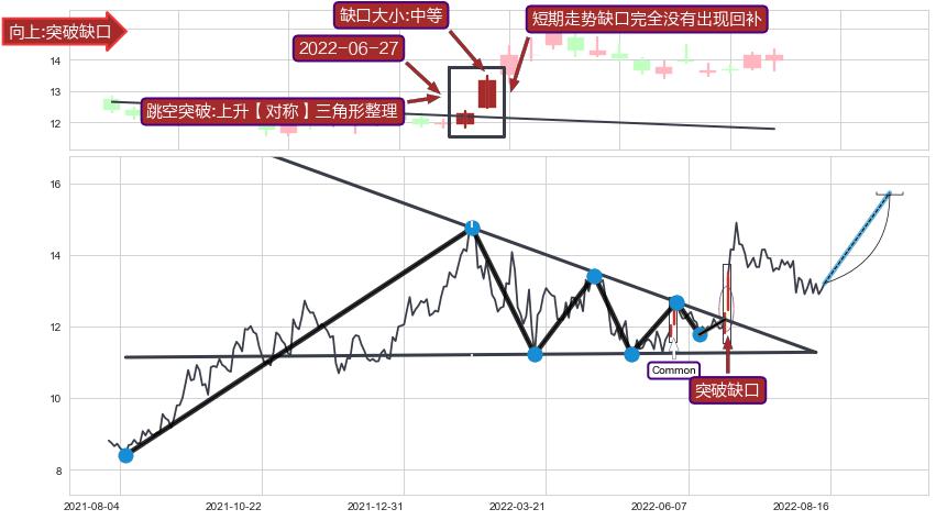 ➣ 【已确认突破】上升【对称】三角形整理 起点:2021-08-06,突破点:2022-06-24,形态共212交易日