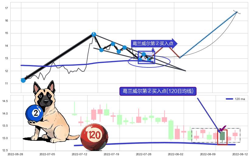 ♘ 在最后的上升阶段2021-08-06至2022-07-13存在 持续未破位的支撑位 ,支撑价格12.15,支撑可信任强度85.10%,其距离最后价格13.21相差 -8.06%