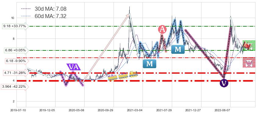♘ 支撑价格位4.71,可信任强度80.46%,距离最后交易2022-08-12形成的收盘价格6.86相差 -31.28%