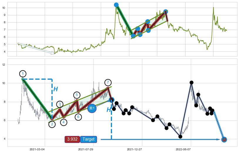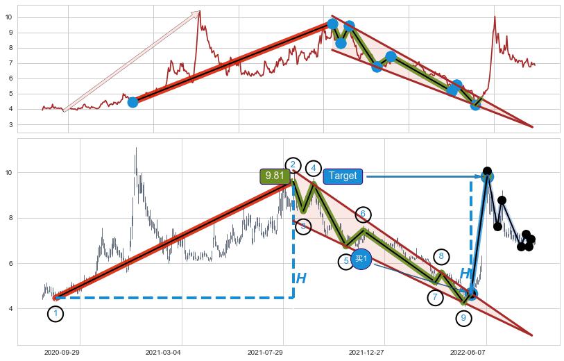➢ 最小中继整理涨幅→𝐇: 5.14 (𝐇楔型旗杆的长度:楔型起点→顶点)
