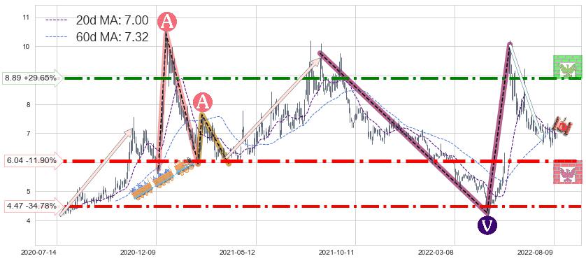 ➢ 2022-05-31到达第❶价格目标位置6.80