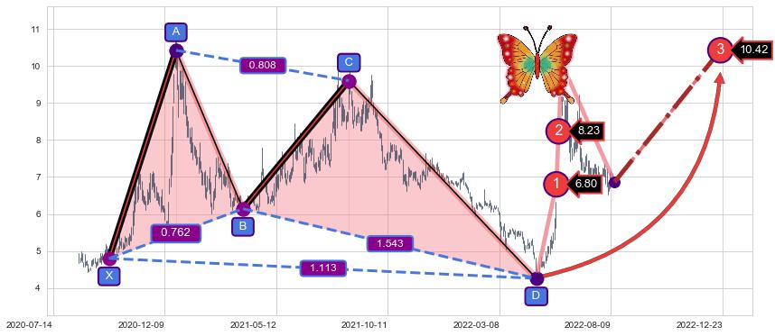 ➣ 已完成【蝴蝶】形态起点X: 2020-09-22, 终点D: 2022-04-26, 共384交易日