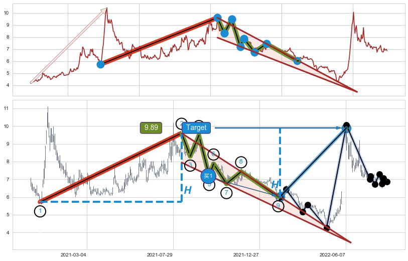 ➣ 2022-06-02到达第❷价格目标位置8.23