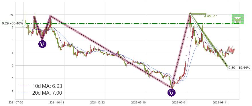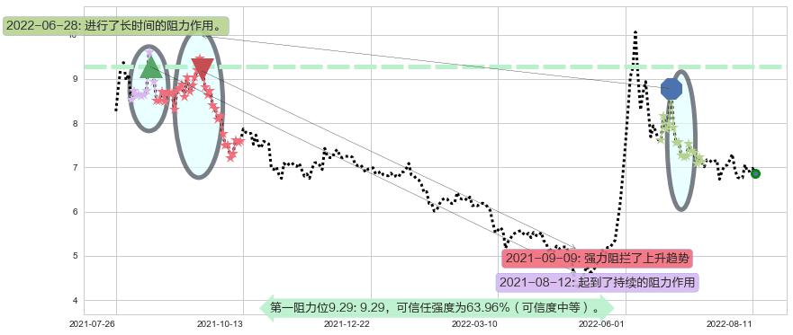 ♘ 阻力价格位9.29,可信任强度63.96%,距离最后交易2022-08-12形成的收盘价格6.86相差 +35.40%