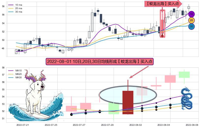 ⚀ 2022-08-01日显现 10日-20日-30日均线 【蛟龙出海】买入点 看多信号,后市看涨,买入