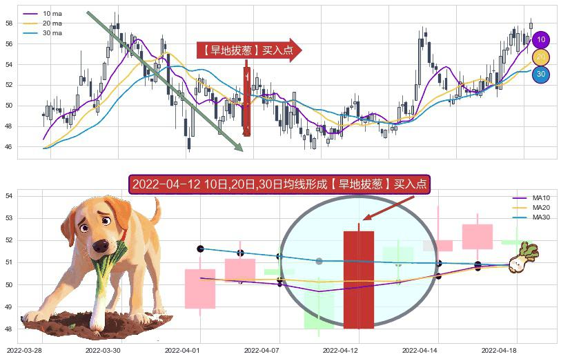 ⚀ 2022-04-12日显现 10日-20日-30日均线 【旱地拔葱】买入点 看多信号,后市看涨,买入