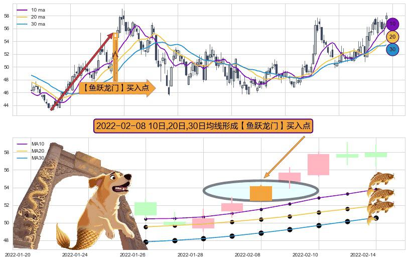 ⚀ 2022-02-08日显现 10日-20日-30日均线 【鱼跃龙门】买入点 看多信号,后市看涨,买入