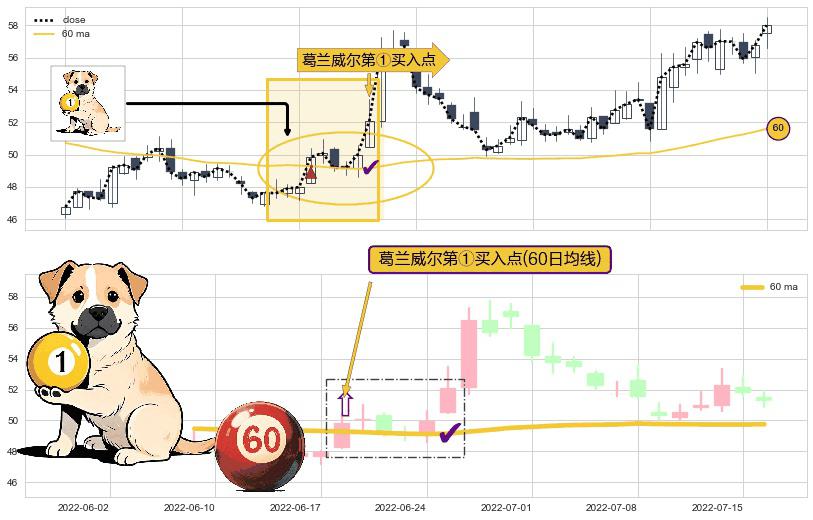 ⚀ 2022-06-20-日显现 葛兰威尔均线 60日均线 第买①入点 走势反转见底信号,后市看涨,买进信号