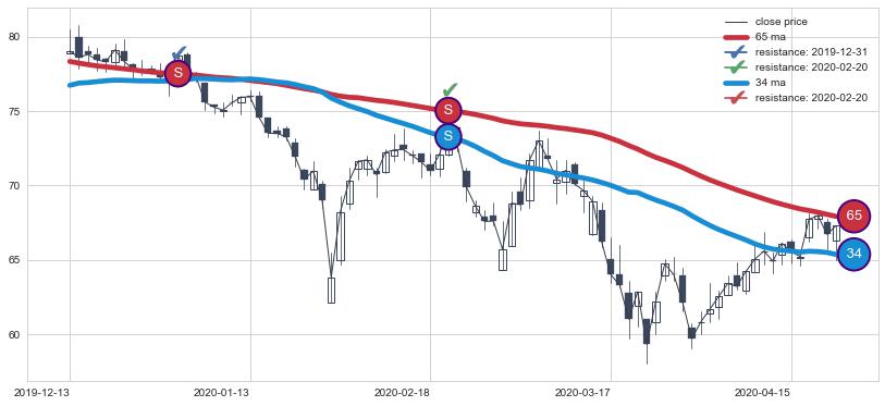 ➢ 最优均线组合共正确确认支撑阻力信号5处,正确确认率 71.43%