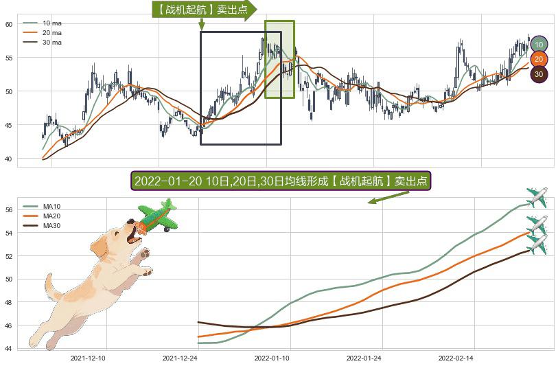 ⚀ 2021-12-24日-2022-02-22日显现 10日-20日-30日均线 【战机起航】卖出点 看空信号,后市看跌,卖出