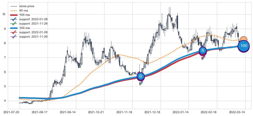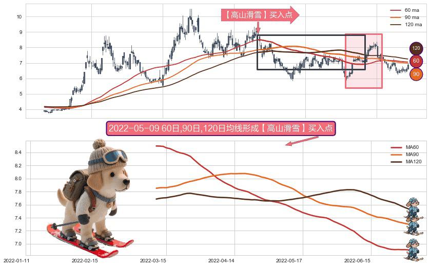 ⚀ 2022-03-10日-2022-06-30日显现 60日-90日-120日均线 【高山滑雪】买入点 看多信号,后市看涨,买入