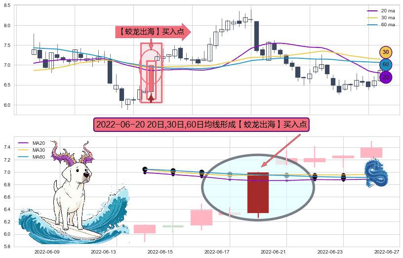 ⚀ 2022-06-20日显现 20日-30日-60日均线 【蛟龙出海】买入点 看多信号,后市看涨,买入