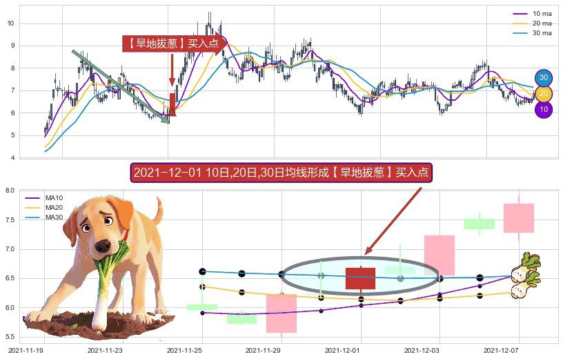 ⚀ 2021-12-01日显现 10日-20日-30日均线 【旱地拔葱】买入点 看多信号,后市看涨,买入