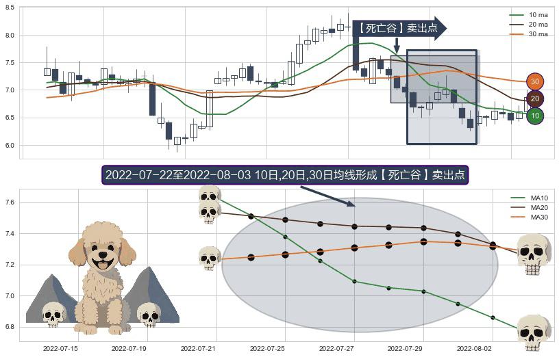 ⚀ 2022-07-25-日至2022-08-03-日显现 10日-20日-30日均线 【死亡谷】卖出点 看空信号,后市看跌,卖出