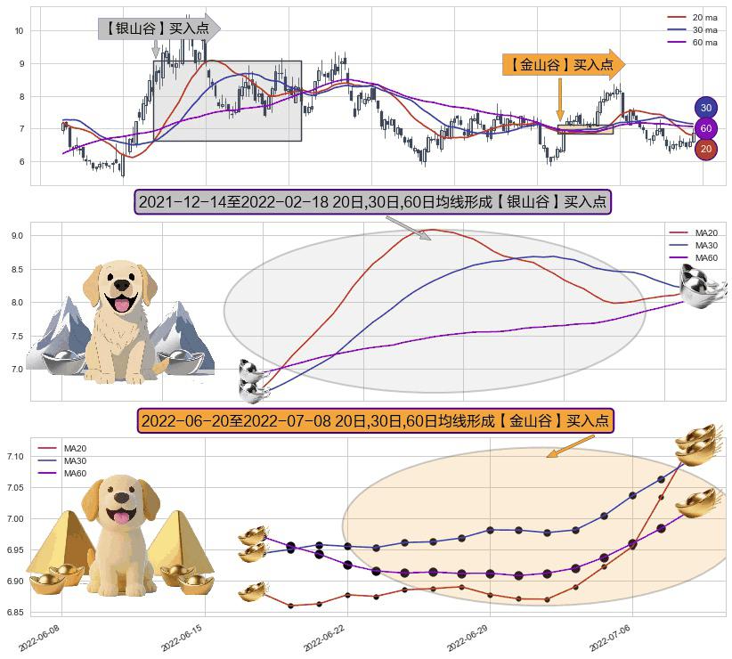 ⚀ 2022-06-21-日至2022-07-08-日显现 20日-30日-60日均线 【金山谷】买入点 其再次确认了买入信号,可靠性更强,买入
