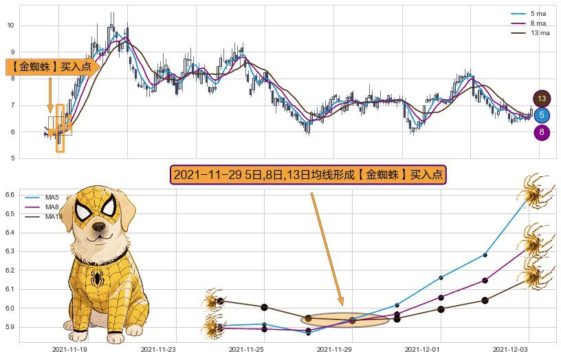 ⚀ 2021-11-29日显现 5日-8日-13日均线 【金蜘蛛】买入点 看多信号,后市看涨,买入