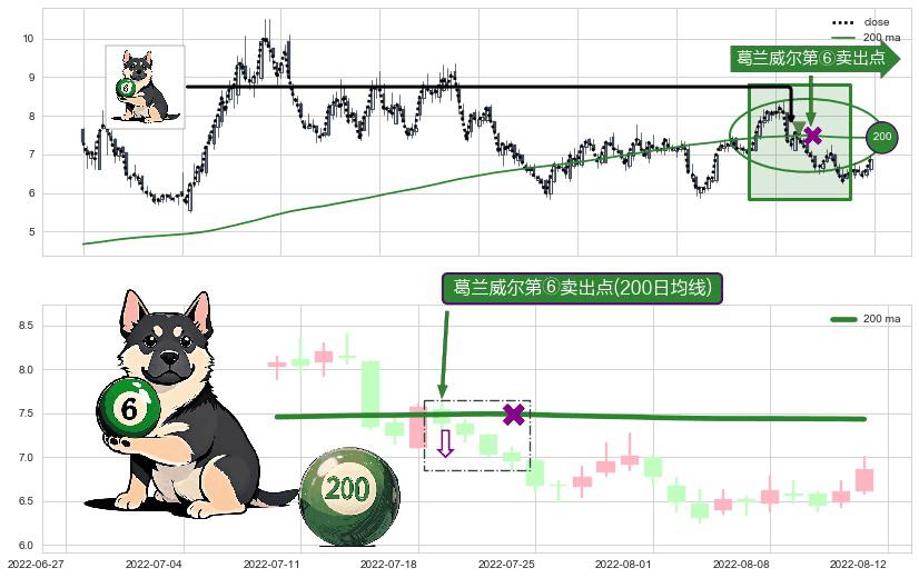 ⚀ 2022-07-19-日显现 葛兰威尔均线 200日均线 第⑥卖出点 走势反转见顶信号,后市看跌,卖出信号