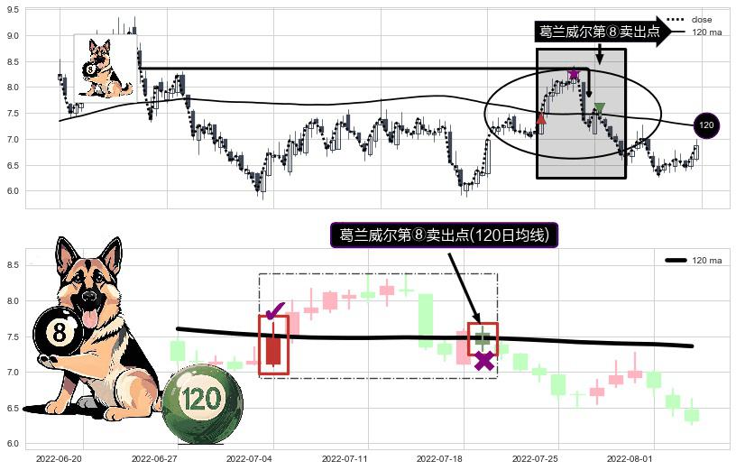 ⚀ 2022-07-19-日显现 葛兰威尔均线 120日均线 第⑧卖出点 下降趋势的中继信号,后市看跌,卖出信号
