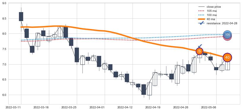 ⚂ 2022-07-04-日均线向上突破,2022-07-19-日重新下穿均线破位,均线阻力再次生效