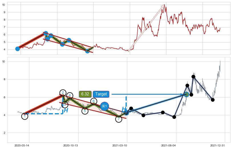 ➢ 【已达成】最小【整理】第一目标价格→(2021-09-02: 6.32 ), 后续继续【整理】上涨动力不足,有下跌迹象存在