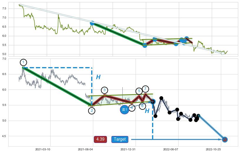 ➣ 最小中继整理跌幅→𝐇: 0.210000 (上平行阻力线与下平行支撑线的垂直距离)