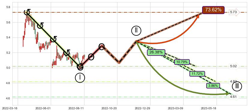 ➢ AI预测: 假定反转启动后, 第❷目标位置(2022-12-01, 5.14)