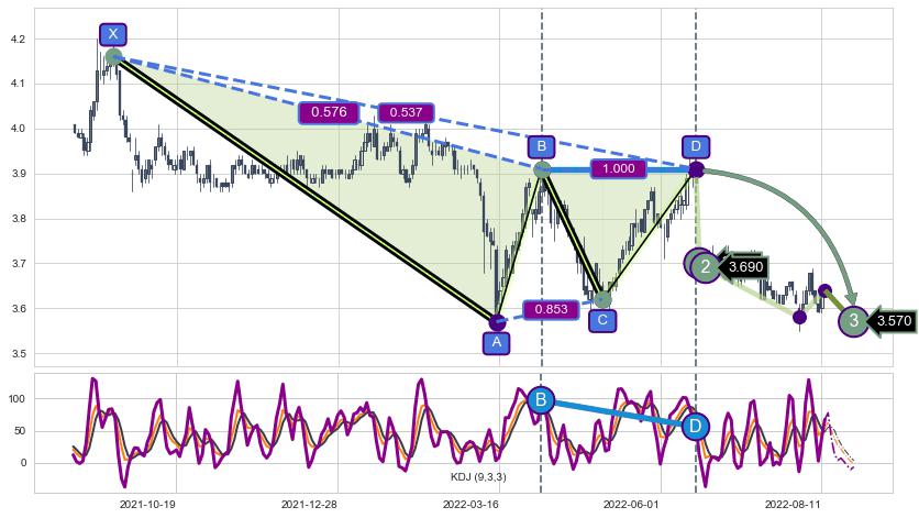 ➢ AI预测: 假定反转继续,第❸价格目标位置(2022-08-25, 3.570)